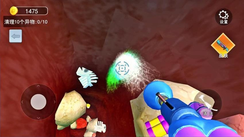 1. 基础操作训练:首关“肠道初体验”提供交互式教程,引导玩家熟悉设备控制(滑动屏幕调整视角、点击按钮切换工具)、任务目标识别(高亮显示目标异物)及清理进度查看(左上角任务栏实时更新)。
