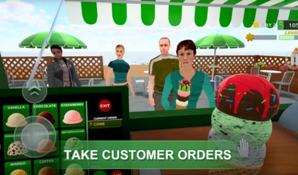 1. 基础操作教学:游戏开局通过引导任务教授核心玩法,包括如何接单、制作、收银,新手可优先完成“制作5份香草冰淇淋”等简单任务熟悉流程。