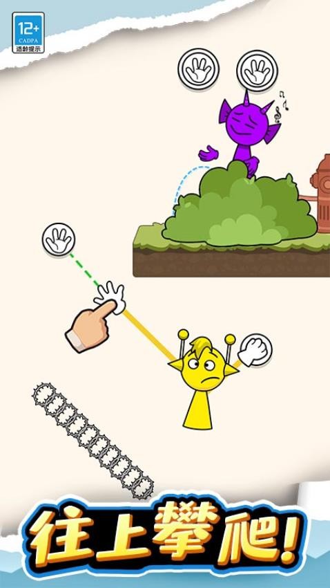 2. 操作方式:左手摇杆控制角色移动,右手按键调节手臂长度,长按蓄力增强弹性,支持滑动屏幕调整手臂角度,实现精准抓取与投掷。