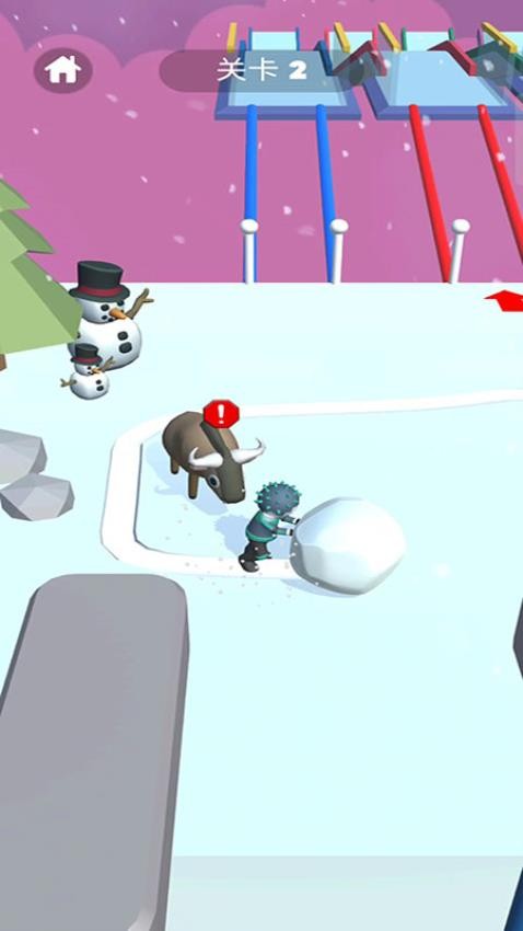 1. 基础操作:进入赛道后,滑动屏幕控制角色移动方向,长按屏幕可加速滚动雪球。雪球接触地面冰雪时自动堆积,玩家需根据赛道宽度调整滚动角度,避免雪球偏离路线。