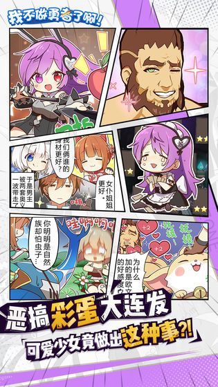 我不做勇者了啊是一款趣味搞笑风格的剧情冒险类手游,二次元的游戏画面,动漫式的游戏场景,Q萌可爱的角色人物,给你带来极致的视觉盛宴,还有大量恶搞的剧情故事。各种英雄角色自由收集,熟练运用各种专属技能;游戏采用了消除类战斗模式,玩家需要不断的探索着,运用一切技能消灭所有敌人,享受别样的战斗体验。