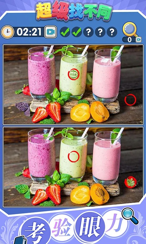 1. 基础操作:双指缩放可调整图片视角,单指点击差异区域完成标记,连续正确标记3次触发“连击模式”,额外获得时间奖励。