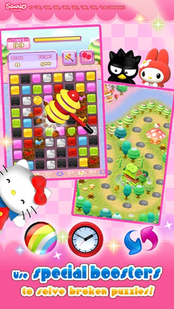 2. 宠物互动陪伴:游戏中解锁美乐蒂、布丁狗等萌宠助手,它们会在玩家闯关时陪伴左右,增添游戏的趣味性。