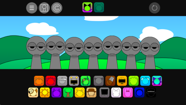 游戏以《节奏盒子(Incredibox)》的拖拽逻辑为基础,玩家通过将屏幕底部的音效图标(如帽子、乐器、眼睛等)拖拽至角色身上,触发对应的节奏片段。每个角色拥有独立音效库,涵盖鼓点、贝斯、旋律及人声,支持自由组合形成个性化音乐层次。例如,在第五阶段中,玩家需通过视觉与听觉双重配合,调整角色装扮颜色与音乐节拍的对应关系,确保整体色彩分布与音轨层次一致,最终实现“完美同步”以触发隐藏动画。