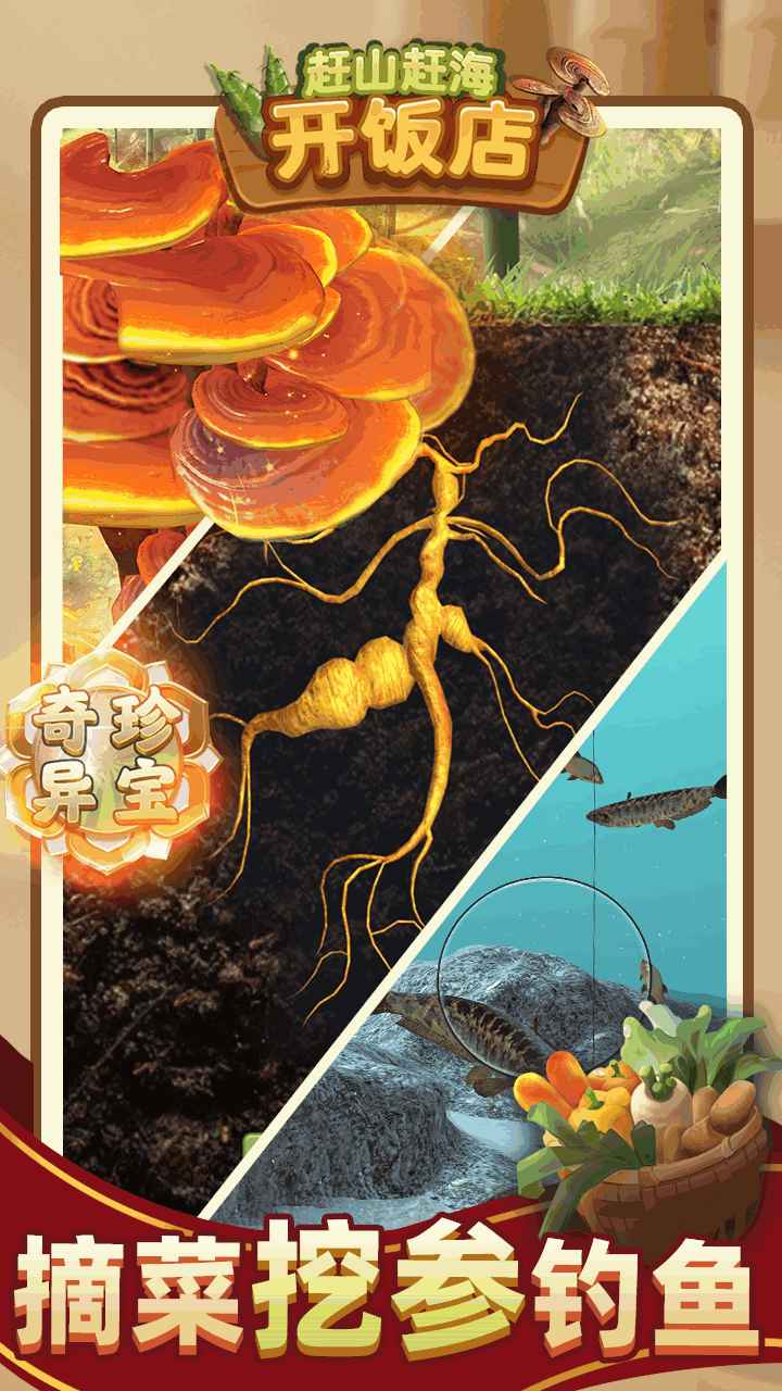 1. 双线采集玩法:独创“赶山+赶海”双场景,后山可挖掘金钗石斛、赤色莲蓬等稀有草药,海域可垂钓红纹鳜鱼、鲈鱼等珍稀鱼类,部分食材需通过清除杂草或特定关卡解锁,如第5章山水村隐藏的金钗石斛需仔细观察草丛。