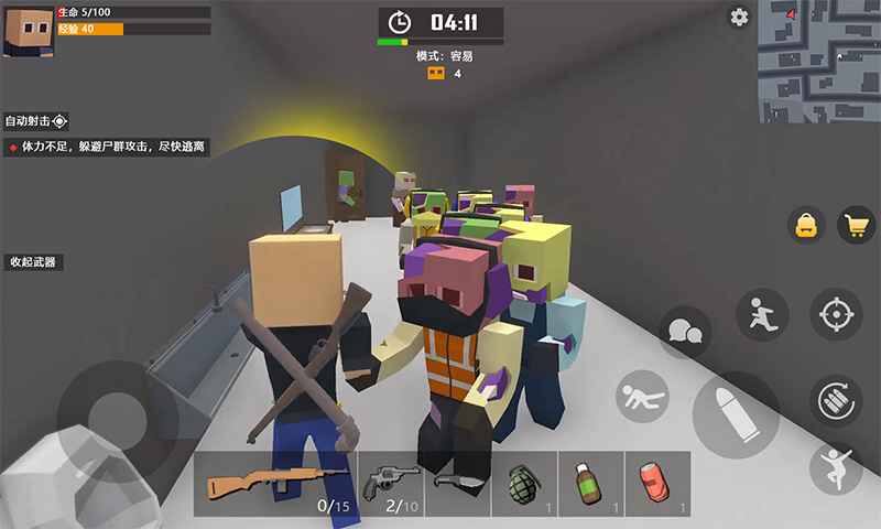 4. 多样化战斗系统:僵尸类型多达20余种,包括速度型、装甲型、爆炸型等,需针对性使用武器克制(如火焰喷射器对抗群体、电磁狙击枪破防重型僵尸)。战斗中可切换第一/第三人称视角,配合掩体系统与战术翻滚实现灵活操作,爆头攻击可大幅提升击杀效率。
