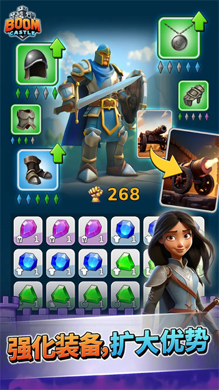 爆炸城堡最新版是一款融合塔防策略、肉鸽元素与RPG养成的创新型安卓手游,玩家将化身魔法城堡守护者,在悬浮于云端的奇幻战场中,通过部署炮塔、陷阱与英雄单位,抵御多波次敌人与隐藏BOSS的猛烈进攻。游戏以欧美卡通画风呈现,结合火焰爆炸特效与动态天气系统,打造出沉浸感十足的战场环境。玩家需根据敌人类型(如巨型魔像、恶魔术士)与地形特征(熔岩裂谷、冰雪平原),灵活调整防御布局,并通过技能卡牌、装备镶嵌与宝石合成等深度养成系统,持续提升防御能力,挑战更高难度关卡。