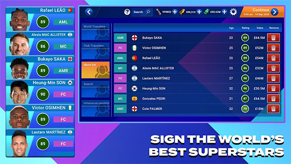 1. 真实数据驱动:游戏内置25,000名FIFPRO认证球员的实时数据,包括能力值、潜力评分及伤病倾向,玩家可依据真实转会市场动态制定引援策略。例如,在2025年夏季转会窗口中,玩家可参考现实中的哈兰德、姆巴佩等巨星数据,通过谈判将其招致麾下。