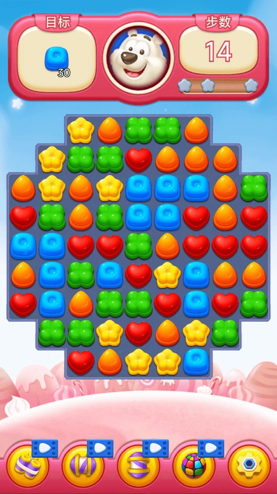 3. 多模式关卡与难度曲线:包含经典消除、限时挑战、无尽模式等玩法,关卡设计涵盖简单入门关与高难度策略关。例如,第150关需在20步内消除200个蓝色果冻,考验玩家对特殊果冻生成位置的预判能力;节日限定关卡则融入万圣节南瓜、圣诞节雪人等主题元素,增加趣味性。