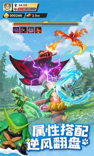 3. 战斗阵容搭配:根据敌方属性选择克制阵容,如面对火系敌人时,派出水系UR“破浪蛙”(高攻击+破防词条)与地系前排“岩盾龟”(高坦度+护盾技能)组合;PvP中采用“双后排+单前排”阵型,利用后排帕萌的全屏大招快速清场。