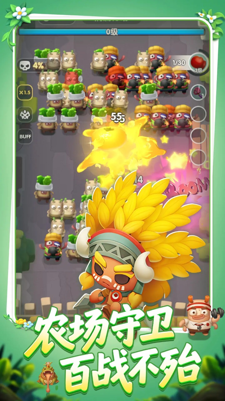 《农场守护者国际版》是一款将模拟经营与放置塔防深度融合的安卓手游,玩家化身农场主,在Q萌的3D卡通画风中经营荒废农场,通过清理杂草、建造核心建筑、规划种植区与养殖区,逐步打造丰收乐园。游戏以“种田+防御”为核心,玩家需种植作物、养殖动物获取资源,同时布置箭塔、炮塔、冰冻塔等多样化防御设施,抵御害虫、野生动物及BOSS的轮番进攻。其特色在于动态地形系统——水上浮田需防水生害虫,梯田则要应对地形限制的怪物路径,结合资源采集、装备养成与离线收益机制,形成经营与战斗的良性循环。