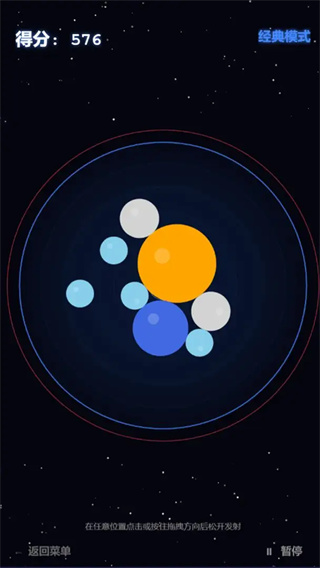 3. 利用暂停功能规划:面对复杂球体分布时,暂停游戏观察引力场轨迹,优先合成能触发连锁反应的球体组合(如三个相邻同色球体)。