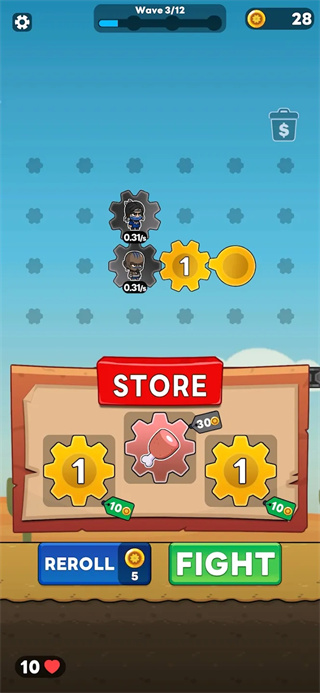 1. 基础操作:拖动齿轮至棋盘格子,齿轮充满颜色后点击“战斗”召唤兵种,击败敌人获得金币与进化点数,用于升级齿轮或解锁新兵种。