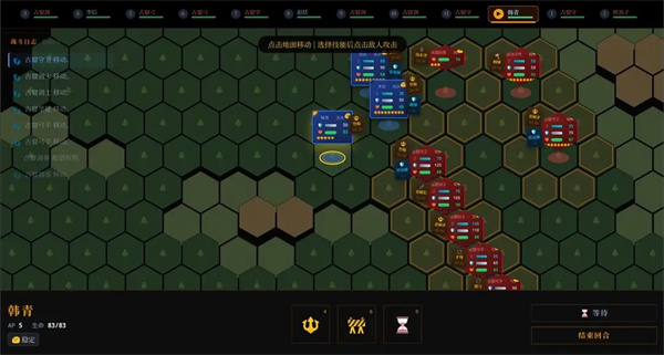 1. 行动值管理:每回合初始行动值为9格,移动消耗2格,防御选项虽无防御效果但会直接扣除行动力,需优先分配行动值给突击、横扫等核心战法。