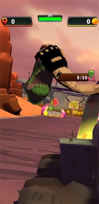 4. 丧尸应对技巧:面对普通丧尸群采用高速冲撞,遇到巨型变异体时需提前减速,利用机枪扫射其头部弱点;被包围时可通过跳跃功能飞跃障碍物脱困。