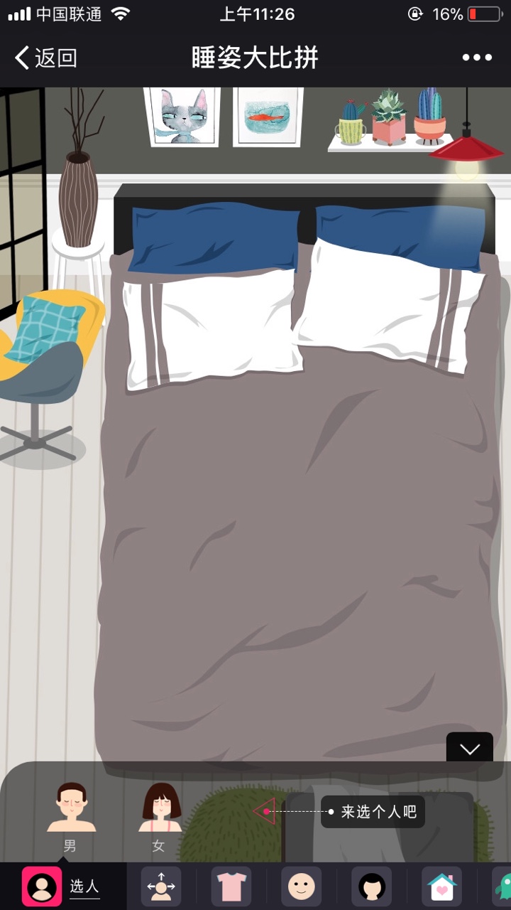 姿大比拼是一款由网易推出的h5互动小游戏,每日摆出个性睡姿即时分享到朋友圈清新的画面和休闲的玩法每日更新睡眠姿势,互相比拼赢得魅力加分吧,手绘风的图片设计和超多装饰以及宠物搭配自由选择成为睡姿达人吧!