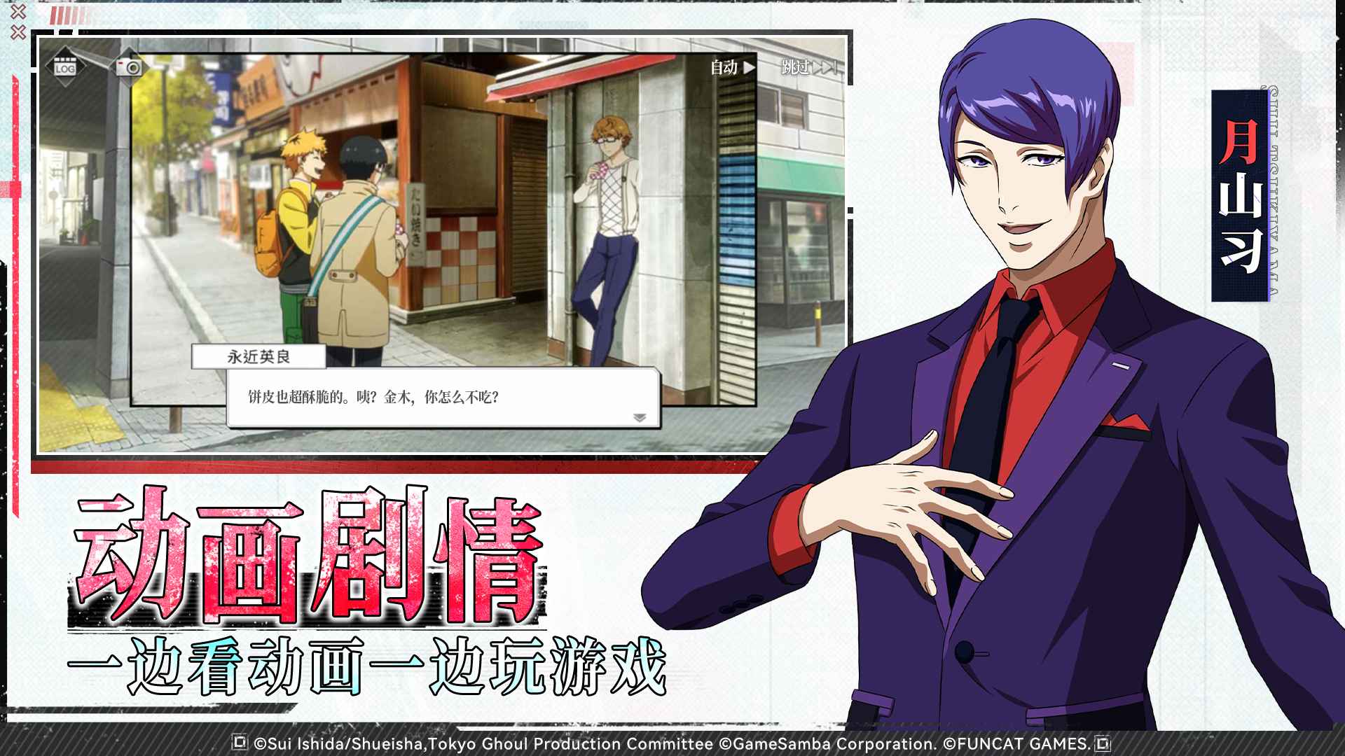 1. 正版IP深度还原:获得《东京喰种》官方授权,从世界观设定、经典剧情到角色形象均高度复刻,金木研的蜈蚣赫子、有马贵将的白色死神形态等标志性元素均通过3D建模精细呈现。