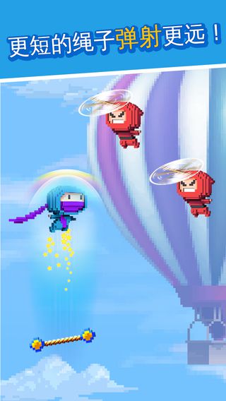 投身全新怀旧街机手游,开启无限欢乐跳跃之旅!用手指画出弹力绳,助力你的忍者节节高升!切勿大意:想要冲到最高点,没点忍者绝活可不行!