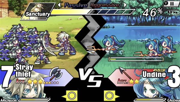 2. 战斗策略:利用武器相克(突击>斧>剑>枪>突击)与地形加成提升胜率。突击阶段可能触发“猛烈突击”或“暴击”,优先击败敌方队长可使其小队全灭。白兵战阶段可通过“闪击”打断敌方技能,画面下方优劣势等级需维持在优势区间以提升技能成功率。