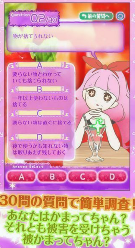《缠人精诊断安卓中文版v1.0》是一款日系风格的测试类手机游戏。游戏以简单的测试内容为主要的游戏内容。玩家在游戏中可以测试自己是不是身边人所讨厌的缠人精!简单的测试中也可以体验到轻松的游戏模式哦!此版本为汉化版,喜欢的玩家赶紧下载体验吧。