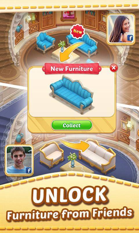 磨练你的室内设计技巧,同时保卫你的新房子,以免被满怀恶意的表兄夺走。追踪麦琪顿庄园的冒险故事、解锁新房间、家具和隐藏的秘密——与一群古怪的人物一同经历这一切。你甚至可以偷看邻居的家,看看他们作出了什么设计选择。你是否已准备好探索这款富挑战性的三消居家装潢益智游戏?