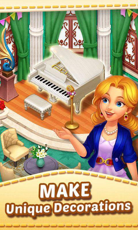 1、有趣而创新的游戏玩法,交换与配对糖果以装饰雄伟的豪宅;