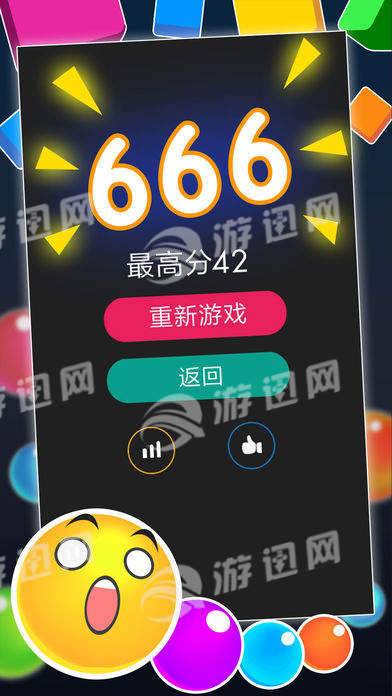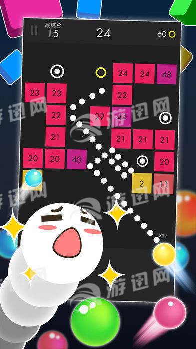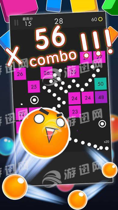 经典模式:手指拖动小球选好角度,去击碎那些试图阻止你获得高分的方块,击落的越多,得到的小球数量越多让你活下去的时间就越长,那样得到的分数才会越来越高。