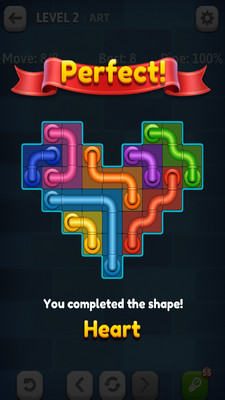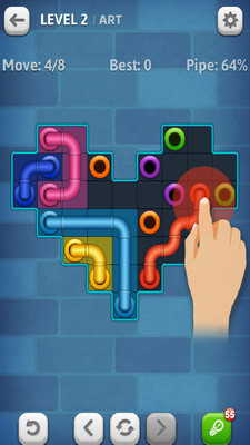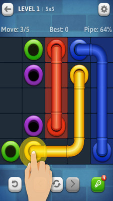 《管道艺术连线》是一款轻松好玩的益智连接管道闯关手游,玩家需要把不同关卡中颜色相同的管道连接起来,而且不能出现交叉的情况,这很考验玩家的逻辑性哦,赶紧下载试试吧!