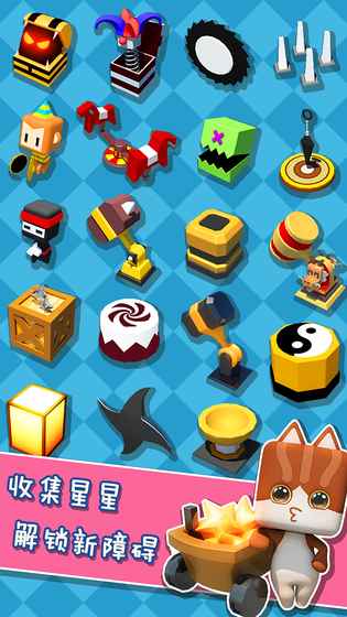 游戏中你需要通过手指拖动,让小猫躲避沿途的危险。游戏的陷阱出其不意,既考验快速反应,也考验提前躲避的时机。“跳台”、“地刺”、“斧子”、“大锤”、“木人桩”、游戏中包含多种多样的地形以及陷阱组合,收集沿途的星星,解锁新的场景和更难的关卡,分分钟的游戏时间就能体验一个奇妙的冒险之旅,快来和小猫一起来一场穿越的冒险吧!
