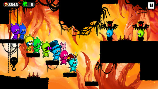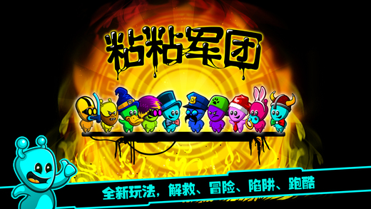 进入游戏之后,玩家首先需要经过一个教学关卡,完成这个关卡之后玩家将对游戏有一个全面的认识。首先,《粘粘军团》在角色的设计上就与其他同类游戏大不相同,主角是一个个吹弹可破的呆萌小怪物,长相非常可爱。接着,玩家需要操控着这个萌物一路狂奔,与诸多横版跑酷作品一样,奔跑的过程中会有各种各样的障碍物,稍不留神就要重新开始,而且随着关卡的不断被解锁,难度会越来越大。