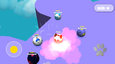 1、卡通风格的碰撞大逃杀玩法,玩家可以自由的控制小球移动、撞击;