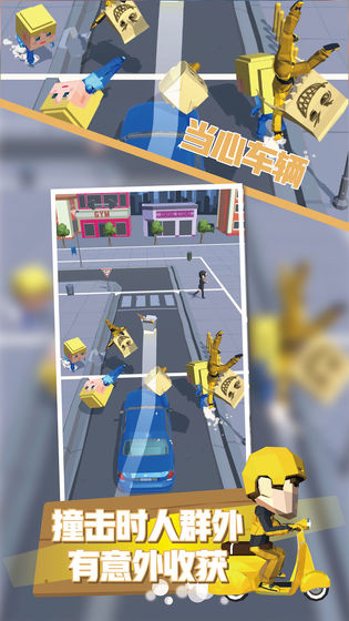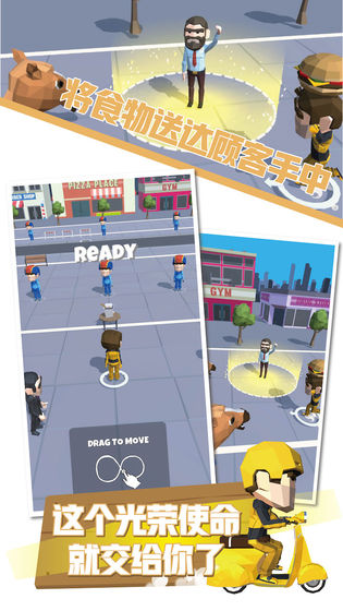 《送餐大作战》是一款关于速度的比拼游戏,化身为一个送餐达人,让顾客的外卖能够顺利的到达顾客的手里,会有一些同行进行抢单,过分的还有抢外卖,要时刻小心,只有完成了相应的订单才可以得到奖励。