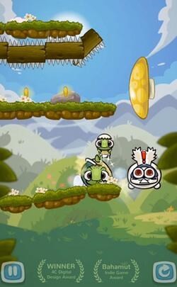 《Roll turtle 》是来自于台湾独立游戏开发者傅君伟所制作的动作过关类手机游戏。画面看起来非常可爱,游戏内容与份量都十分充足,玩家将操作把拔乌龟在5个奇妙世界中拯救他的孩子们。该作的美术风格虽然是走可爱路线,游戏操作简单好上手,但是被国外玩家评论为是一款忍不住想拉扯头发但接着又不断玩下去的游戏的趣味作品。