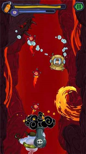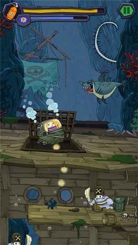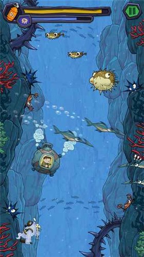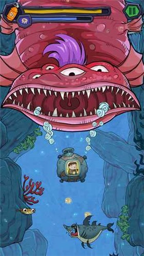 是一款冒险闯关手游,游戏画面卡通,独特的美术风格刻画出一个新奇的深海世界,游戏中玩家将乘坐潜艇在深海探险,有各种海怪和海盗,快来下载吧!