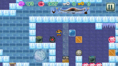 这是一款和GAMELOFT钻石狂潮大作类似的作品,游戏的主要目标就是移动石头,收集钻石,在这个庞大的寺庙中冒险,解决难题。游戏下方界面,从左向右依次为指南针,生命,血槽,紫色钻石数量与红色钻石数量。拿到足够的钻石即可过关,但是也能收集全部钻石达到三星过关。