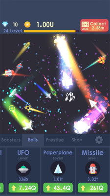 《放置火箭》一款将背景设置在外太空的放置型手机游戏,游戏玩法较为简单,玩家需要点击屏幕来控制火箭发射的方向。并使用积分进行升级,提高自己的效率,还有超多的火箭种类类型解锁,不同的火箭型号下都有着不同的收益效率!非常多的飞行器,可以免费的解锁。对太空飞行游戏感兴趣的小伙伴,到这里体验新奇的乐趣吧!