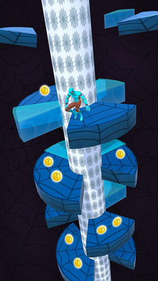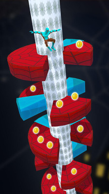 螺旋蜘蛛侠游戏是一款以跳跃为题材的伓闲类手机游戏,你可以用手指来自由的操作蜘蛛侠,采用了向下跳跃的方式来完成极限的冒险,智能踩到深蓝色的木板上,不能够到达其他的颜色踏板,一旦跳错了颜色,你的挑战也是失败,非常的考验玩家的敏捷性,各种跳跃的方式你可以来自由的把控,能够实现更多的闯关才能够进行到底。