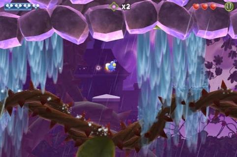 游戏的目的就是找回所有的萤火虫宝宝,在屏幕左上方会有4个萤火虫的标志,这代表本关一共会有4个萤火虫宝宝,其中有两个出现在蓝色框当中,这表示玩家至少要找回两个萤火虫宝宝。右上方的红心代表萤火虫的血值,屏幕右边出现的蓝色圆点是为你指引寻找宝宝的方向,绿色圆点表示你要把宝宝放置的地方。