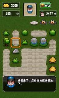 《城管来了》一款休闲消除类手机游戏,画面清晰,游戏中将城管与小街道结合,利用树木可以让城管在道路上被封死,然后可以干掉他,他就变成墓碑了。不过游戏的主要意义还是在于合成消除,把树丛合成大树,大树合成房子,非常好玩的益智消除游戏。