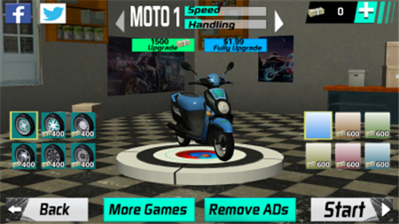 你可以在这里将你的摩托配置升级,改造属于你的摩托,更换你喜欢的摩托颜色,选择你喜欢的摩托外观和摩托装备,打造一辆真正的只属于你的摩托;