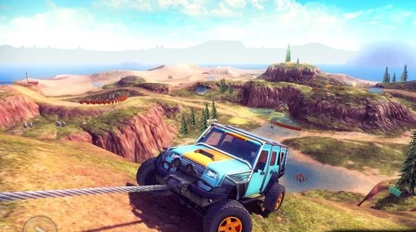 3、在前进的过程中还会遇到麻烦,比如上坡又或者到海的另一边,牵拉上坡,直升机带你飞跃。