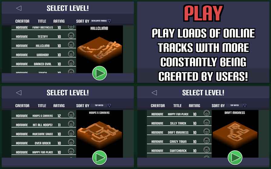 本作最突出的就是自定义,可以快速创建轨道,还可以自定义自己的车辆进行比赛,此外,官方称游戏将加入追踪定制和异步多人赛车。