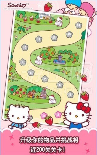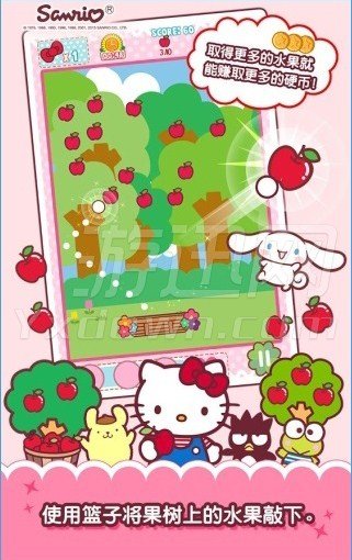 2、您可以升级并装备8位Hello Kitty角色,升级果篮和皮球让他们成为采集果实的最佳工具;