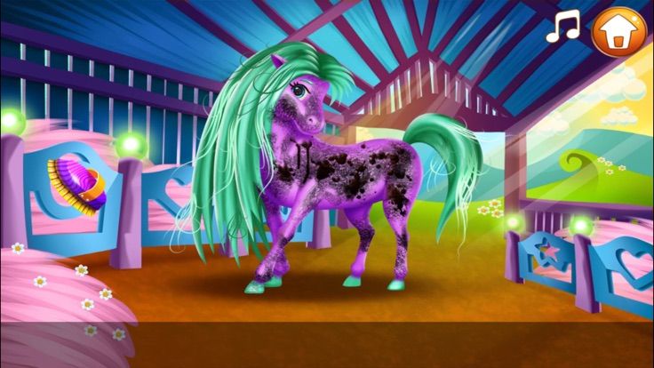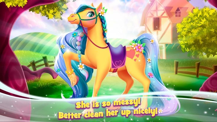 在独角兽土地打了很多之后,马很脏,需要清理一个整洁。洗净漂亮的小马和梳理鬃毛她在这个改造和美容院。使用一些香水一旦你完成,独角兽和马爱闻到好!