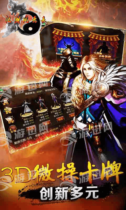 《江湖风云录》是一款以武侠巨著为题材的3D半回合制卡牌游戏,中国风刻画出最美武侠。炫酷华丽的技能特效,360度战斗自由旋转,千余名武林豪杰等你招募麾下,搭配你最强的专属组合。玩法极易上手,新手引导有萌妹子声音带你感受。材料收集 提升品质,副本收集材料 让你的武侠更具战斗力。最混搭的武侠宿命,千名武侠宿命任意匹配,成就最强大的阵容。微操多元可控化战斗武侠大招在你指尖 一触即发。