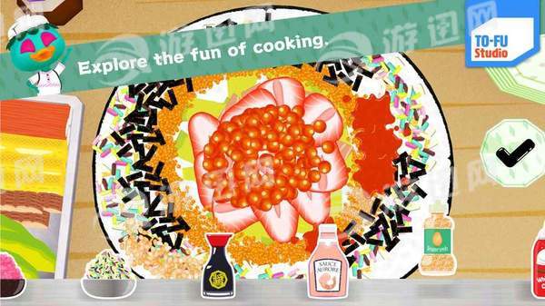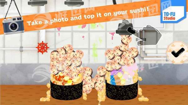 1、根据不同客人的要求往不同的寿司之中添加各种食材,点击对应的食材滑动屏幕即可。