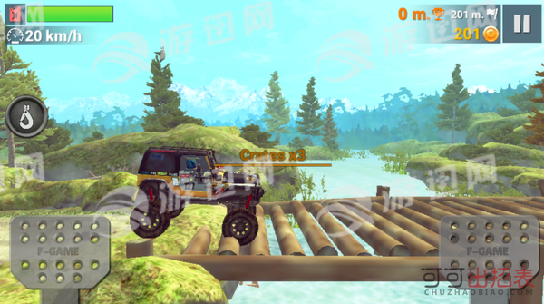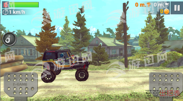 四轮越野旅行是一款赛车体育类型的小游戏,进入游戏后玩家通过操纵屏幕下方的刹车键和油门键控制越野车的前进和后退,让他顺利跑在山路上,躲开前方的障碍。