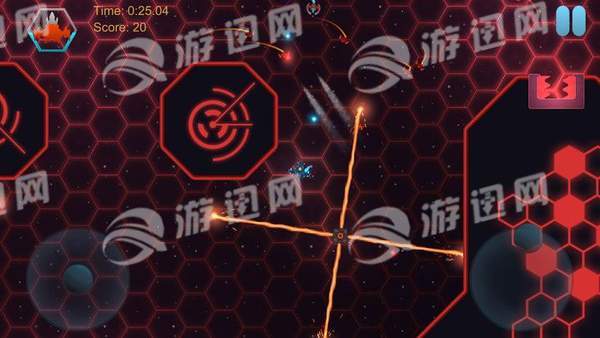 2、你需要在宙空间站驾驶一个大型太空飞船逃离无人机的追击,并击败所有出击的敌人们,展现你的战场威力;