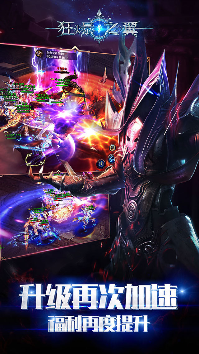 《狂爆之翼满V版》是一款以激爽战斗为核心的3D炫战ARPG手游。官方正版授权,星耀版福利大幅提升,上线就送VIP15,钻石*20000,黑钻*20000,金币*400W,登录还免费送橙9阶装备、炫酷怒翼、霸气坐骑。游戏画面精致,玩法多样,造型百变,流光酷炫。野外战场跨服战,战个痛快。主线托管,解放双手。成长基金,340倍返利。老玩家回归,奖励领到手软。时尚飞翼,霸气宠物,传奇圣物,秀个漂亮。冒险远征,休闲挖矿,公会运镖,刺激畅爽。黑暗套装叱咤风云,主题时装闪耀个性。战斗流畅痛快,PVE+PVP的藏宝地宫,大型跨服战和10V10激爽PK等你来战。