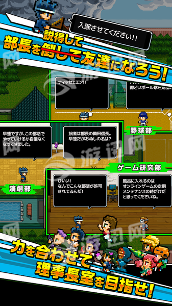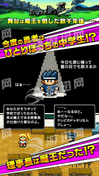 勇者让我入部吧是一款日系像素画风的休闲益智游戏!故事讲述的是最终打败魔王的勇者转世成为了学生的剧情!你将参与各式各样的社团活动来打倒身为学校校长的魔王!丰富多样化的小游戏全部收录其中,如果你喜欢的话千万不要错过!